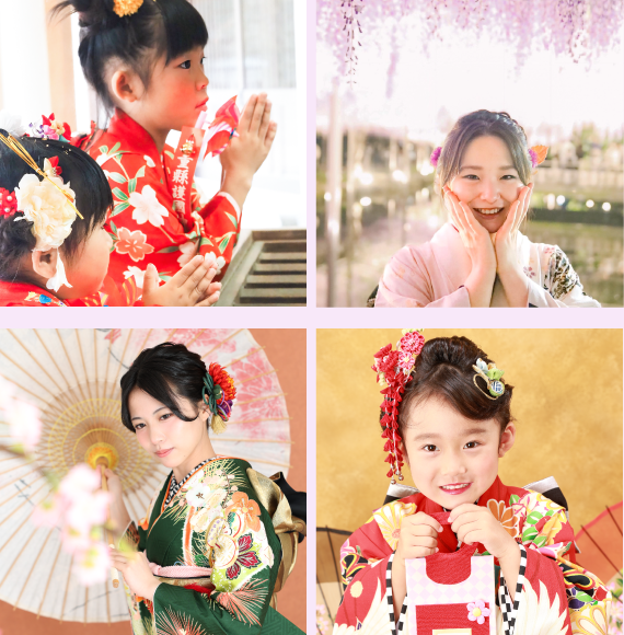 「七五三の記念にレンタル衣裳で参拝して撮影したい」「はたちの記念に思い出の地でママフリで写真を撮りたい「親族の結婚式へ出席するので衣裳を貸してほしい」などさまざまなニーズにお応えします。