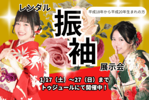 こんにちは。トゥジュールです。 当店では平成18年(2006年)平成19年(2007年)平成20年(2008年)生まれの方を対象にした「レンタル振袖展示会」を開催しております。初日の昨日は沢山のお客様にご来店頂き感謝の気 […]