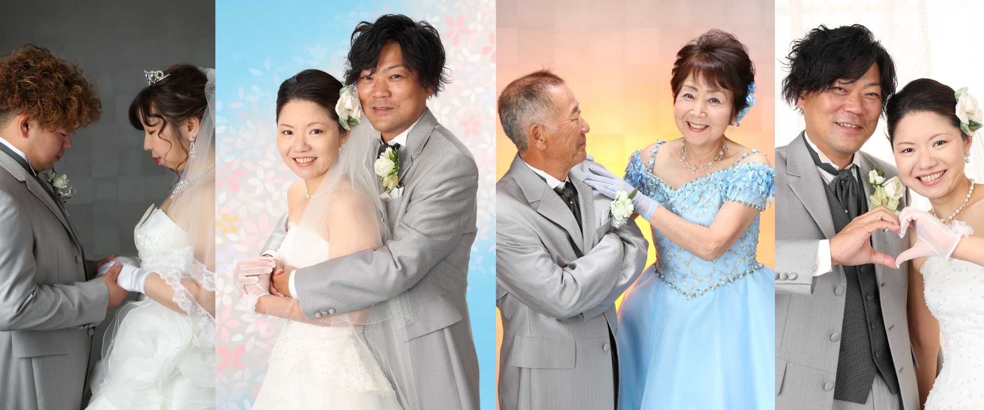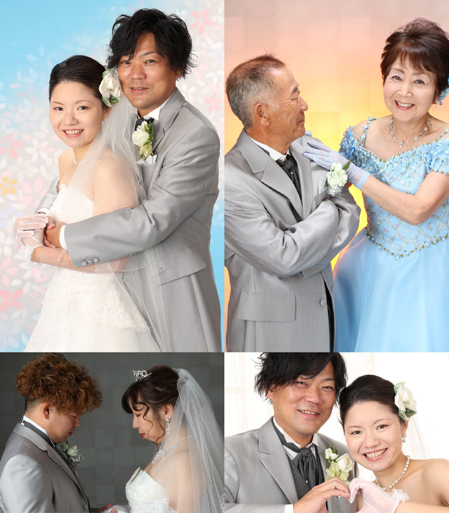 新たな家庭を築く記念にブライダル撮影はいかがですか?ウェディングドレスや打掛、タキシードなどから衣裳をお選びいただき撮影いたします。